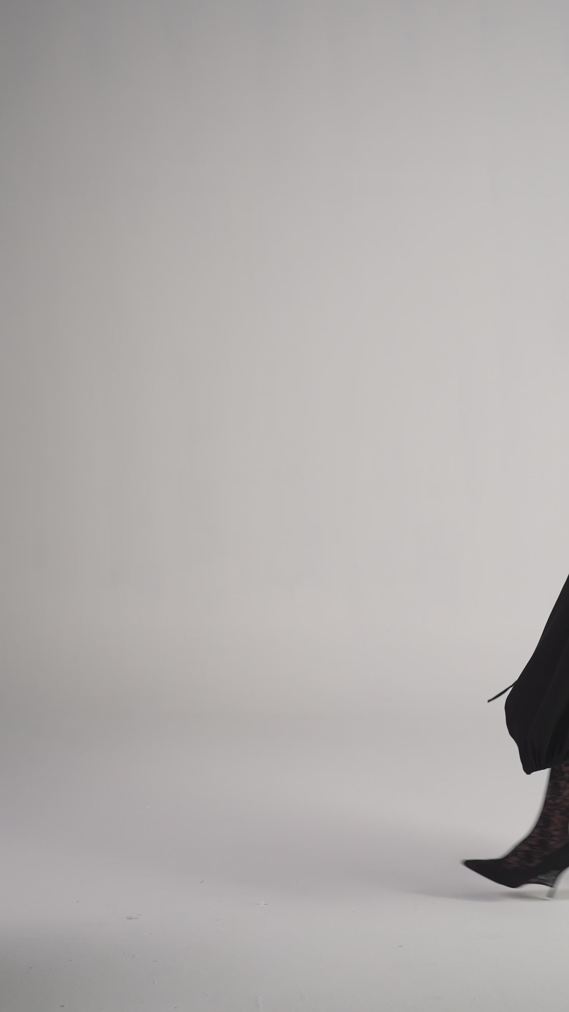 La silhouette est fluide et sculpturale, avec des ouvertures latérales.