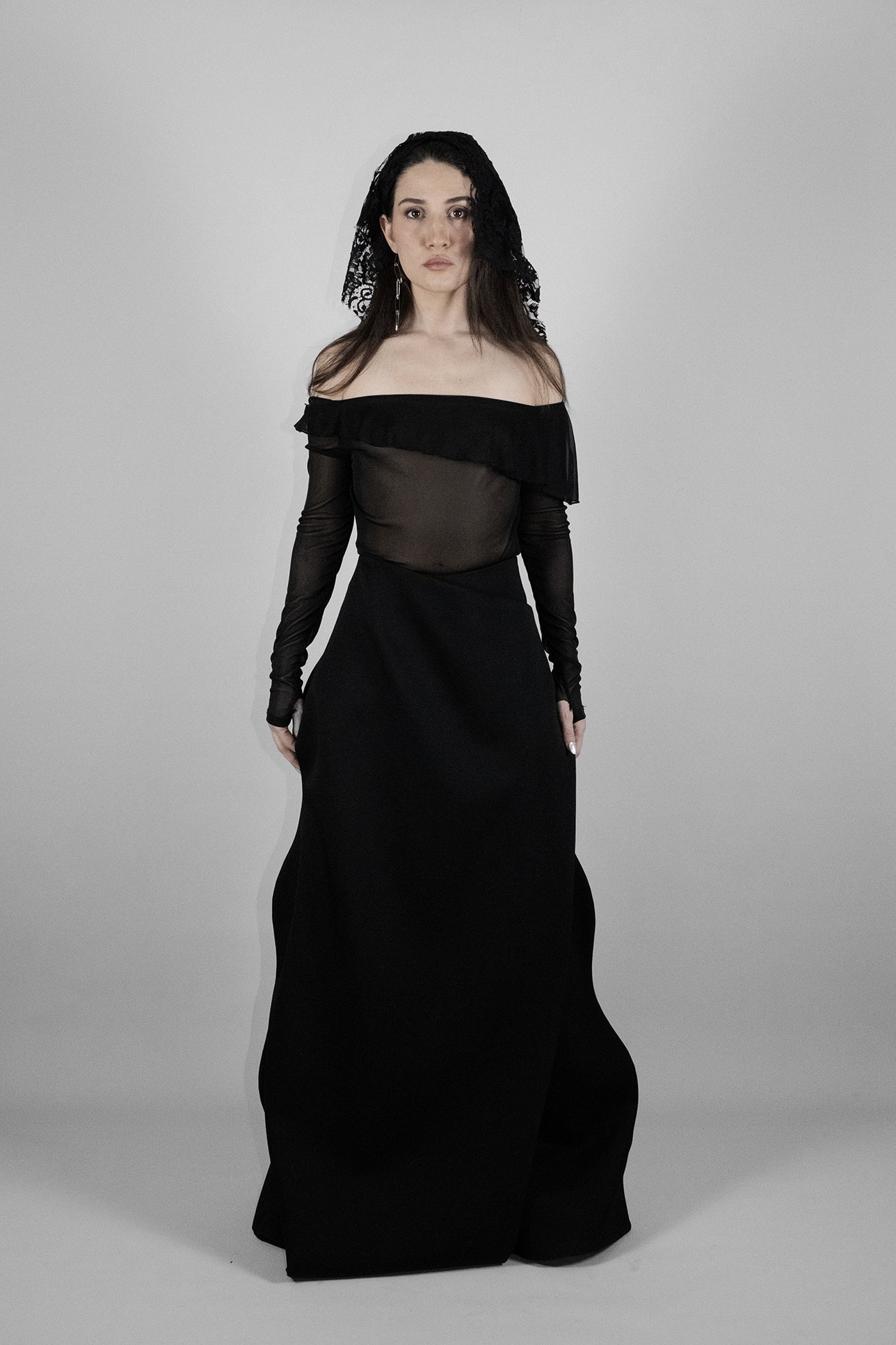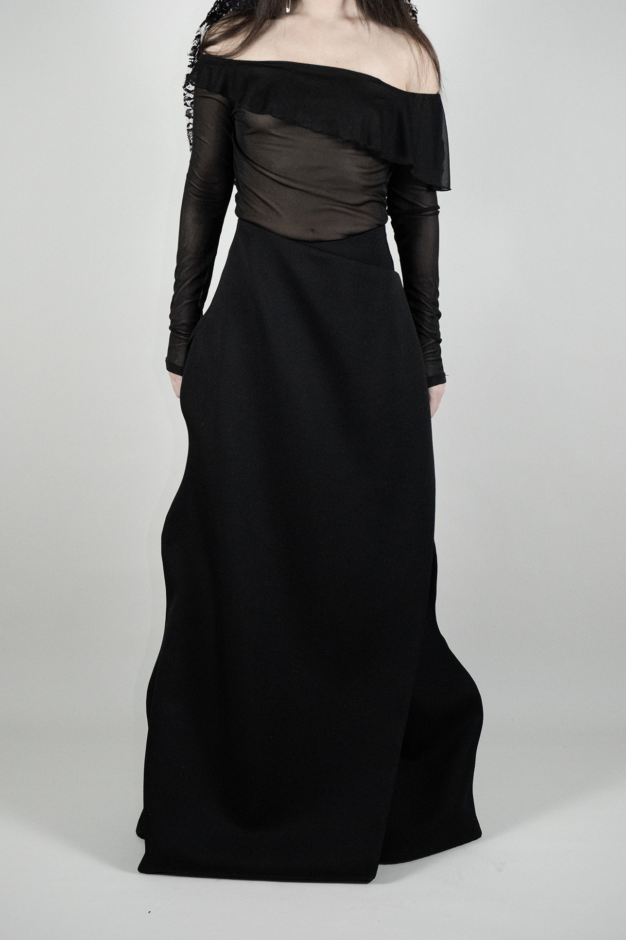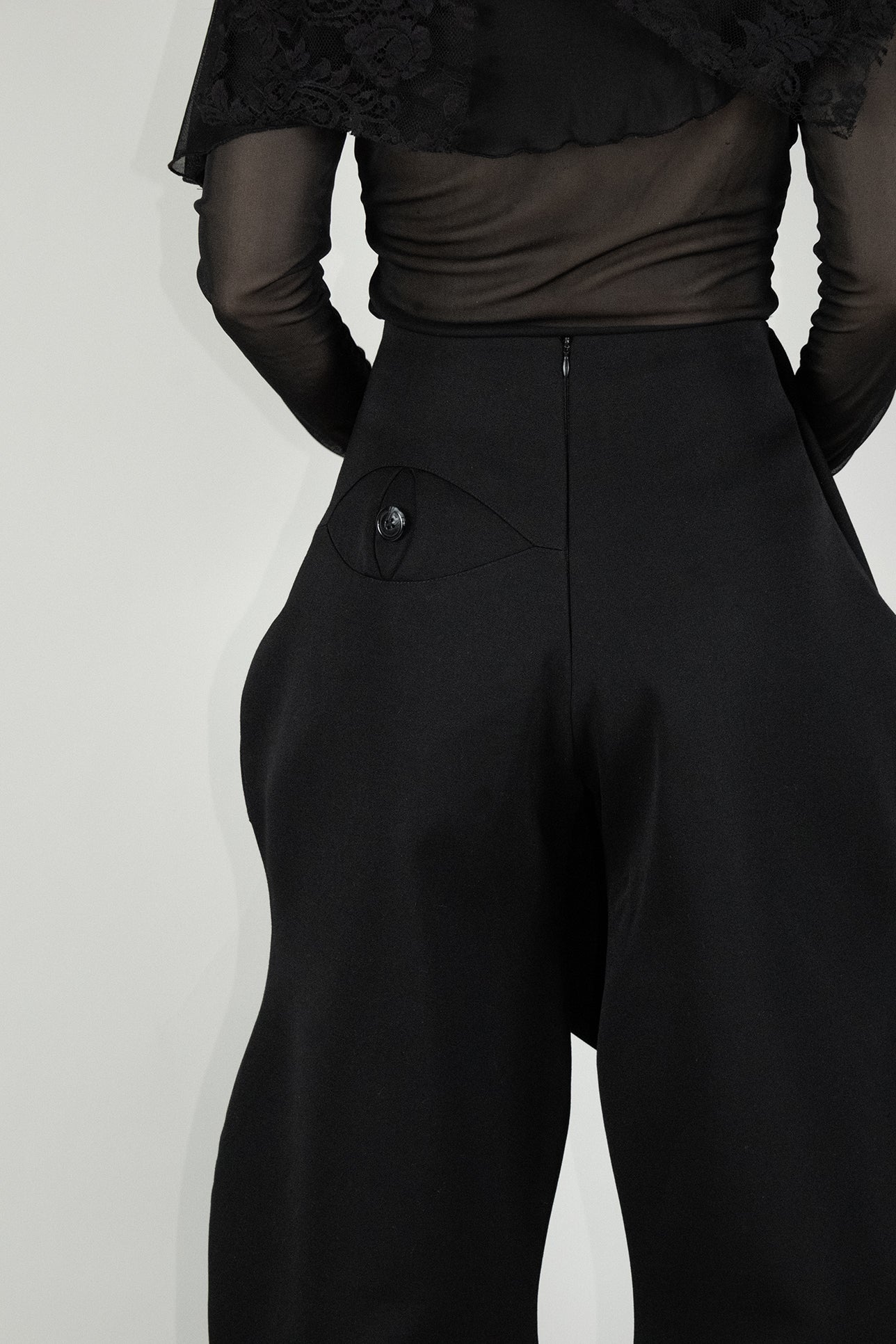デッドストックのウール100%生地を使用し、オーバーサイズのシルエット、ウエストにフィットするフィット感、そして魅惑的なウェーブ効果で、スタイルと汎用性を兼ね備えています。背面のアイディテールが2通りの着こなしを可能にし、魅力とモダンさをプラスしています。