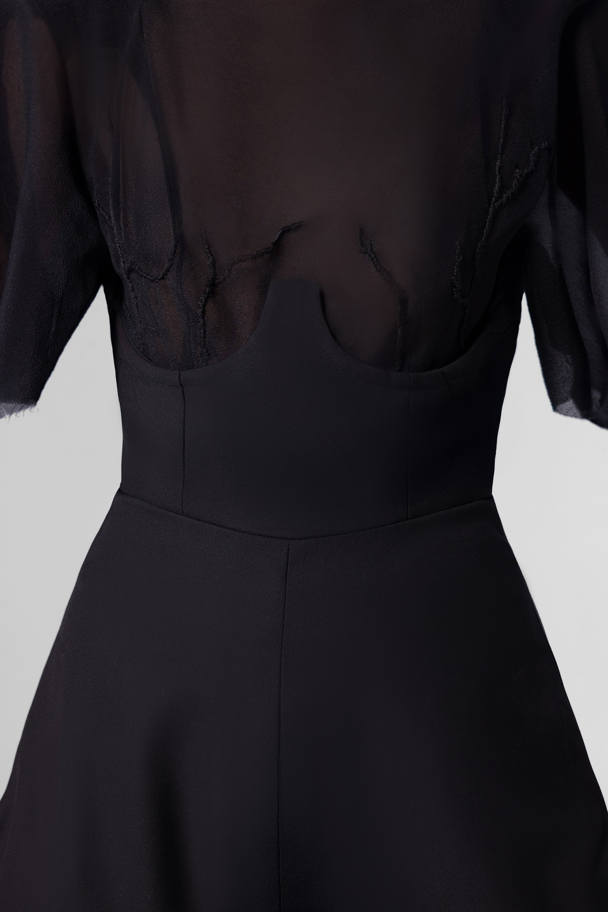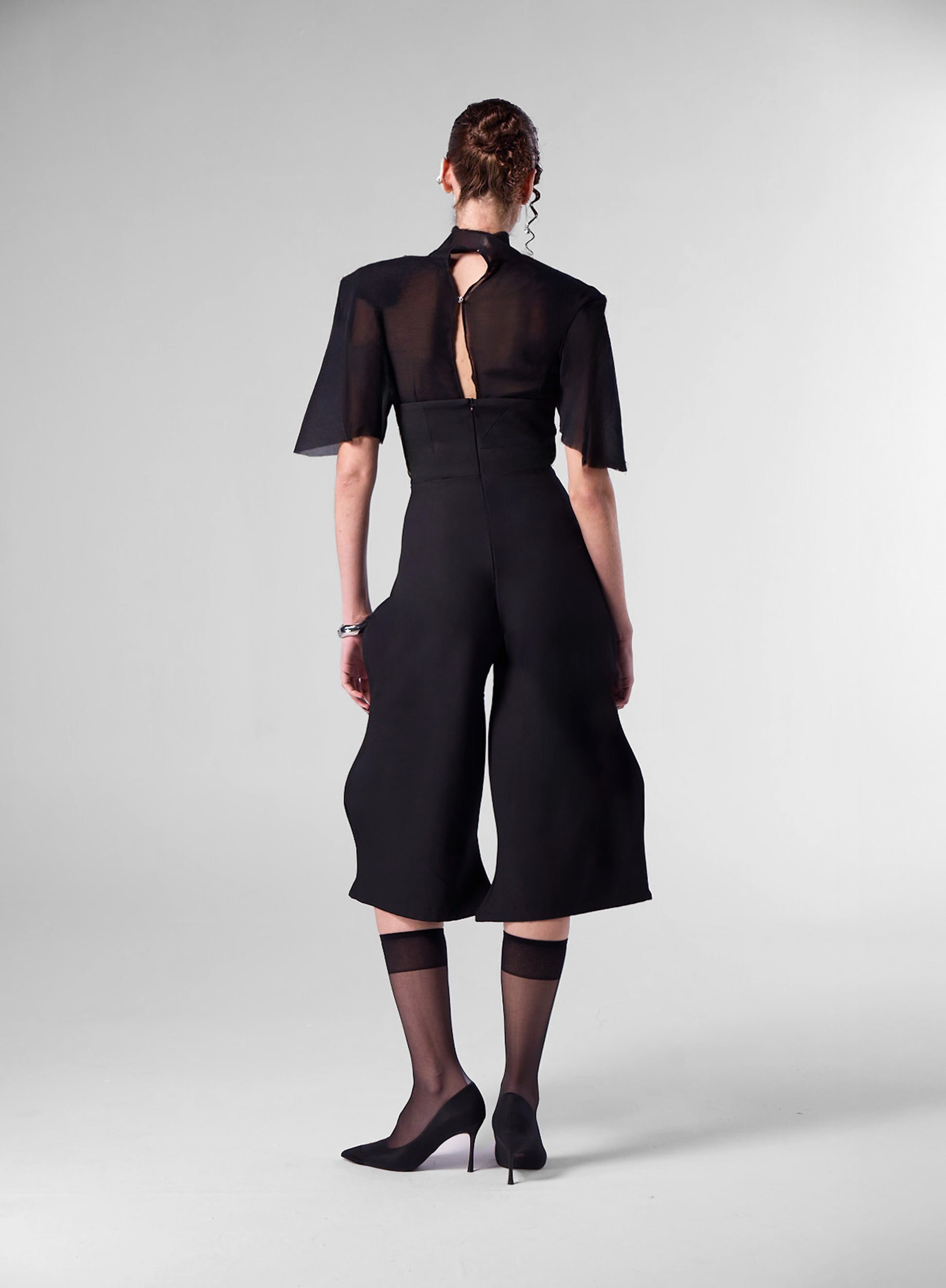 The House signature pants reinterpreted in a shorter length, with a corset-inspired silhouette and geometric wave side lines